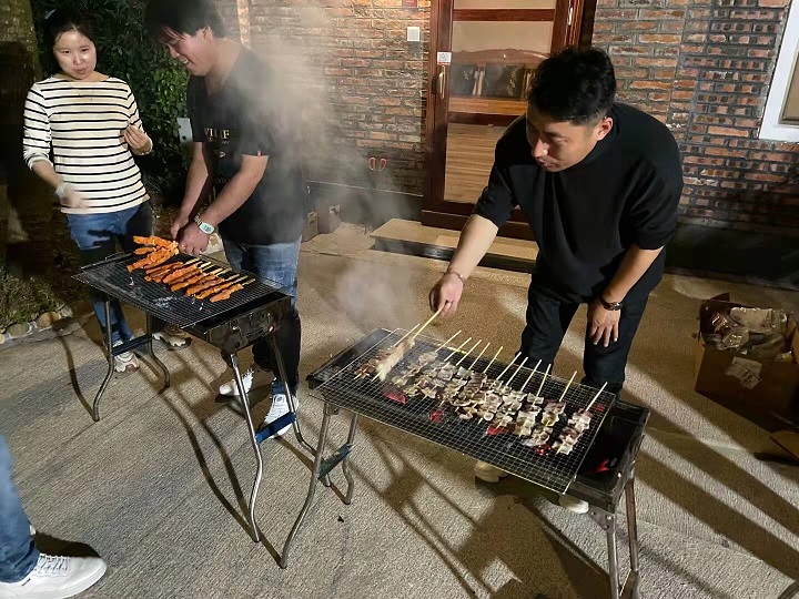 In the evening, we gathered in the lively courtyard to carefully prepare the barbecue ingredients, and organized a specialized northeast barbecue team on site, grilling all kinds of skewers, sitting at a corner of the tea table, chatting and barbecuing, enjoying.