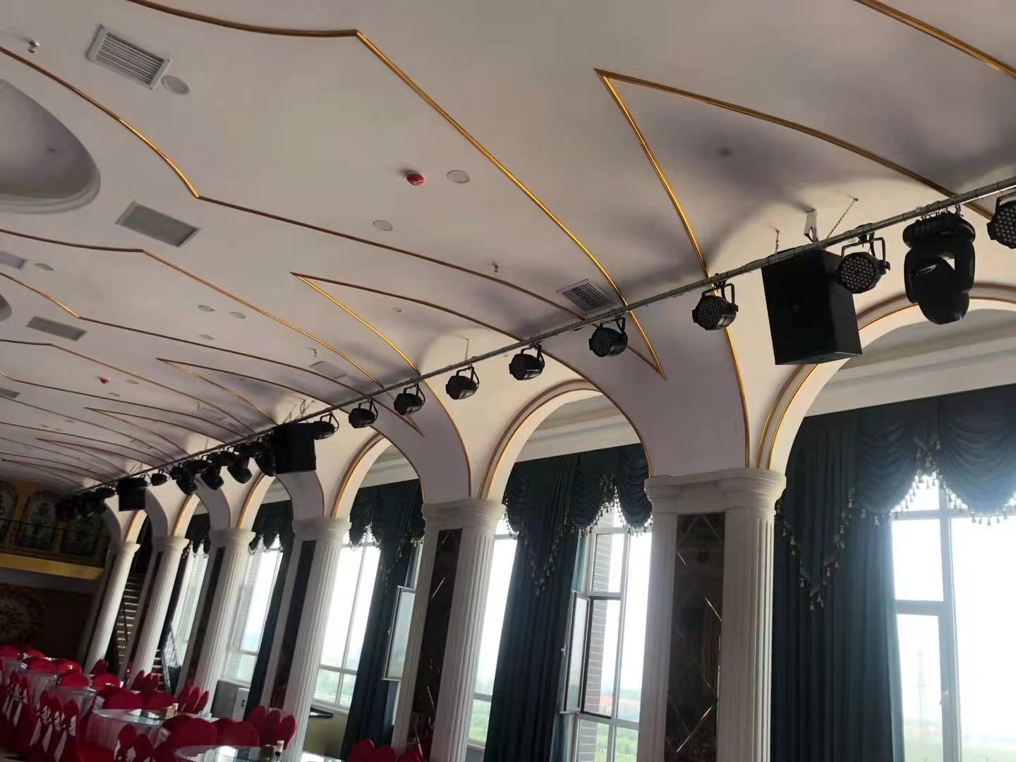 The typical Italian style restaurant, decorated in a comfortable and pleasant tone, is quite good, and there are various seats with exquisite decorations available for guests who like romance. The banquet hall of Xiao Xue Hotel adopts the French Timoo professional sound provided by Ruijian Electroacoustic International, which can be perfectly integrated into various styles of the banquet hall.