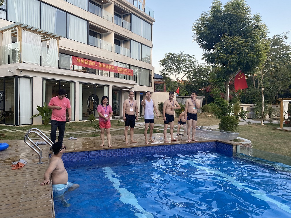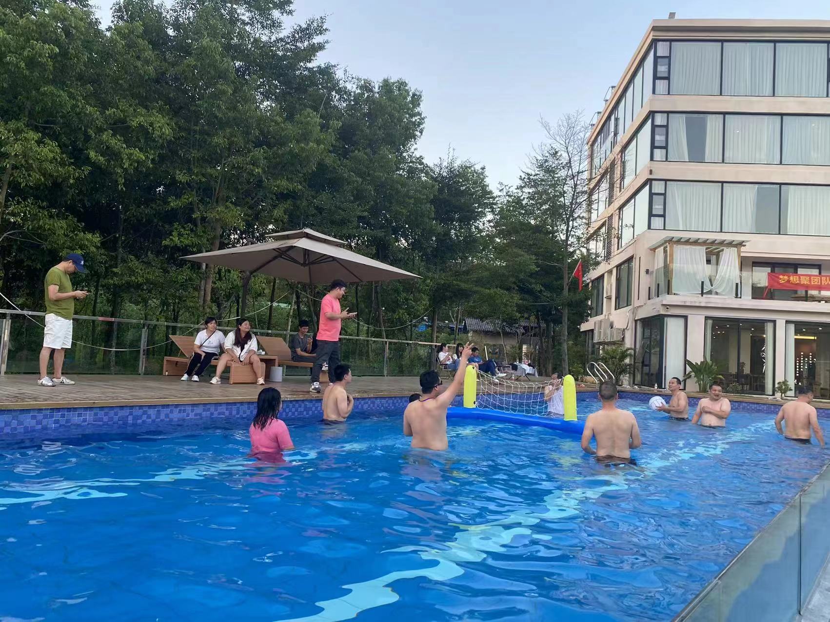 It was already 16:30 when we unpacked, and the group gathered on the grass in the front of resort, started to attend our group building activities. There were games such as the wolf is coming, dragon taking water, water volleyball, swimming competition, etc. One after another, the group made every effort to win the games, and never give up, as time went by, the atmosphere was getting more and more high ......