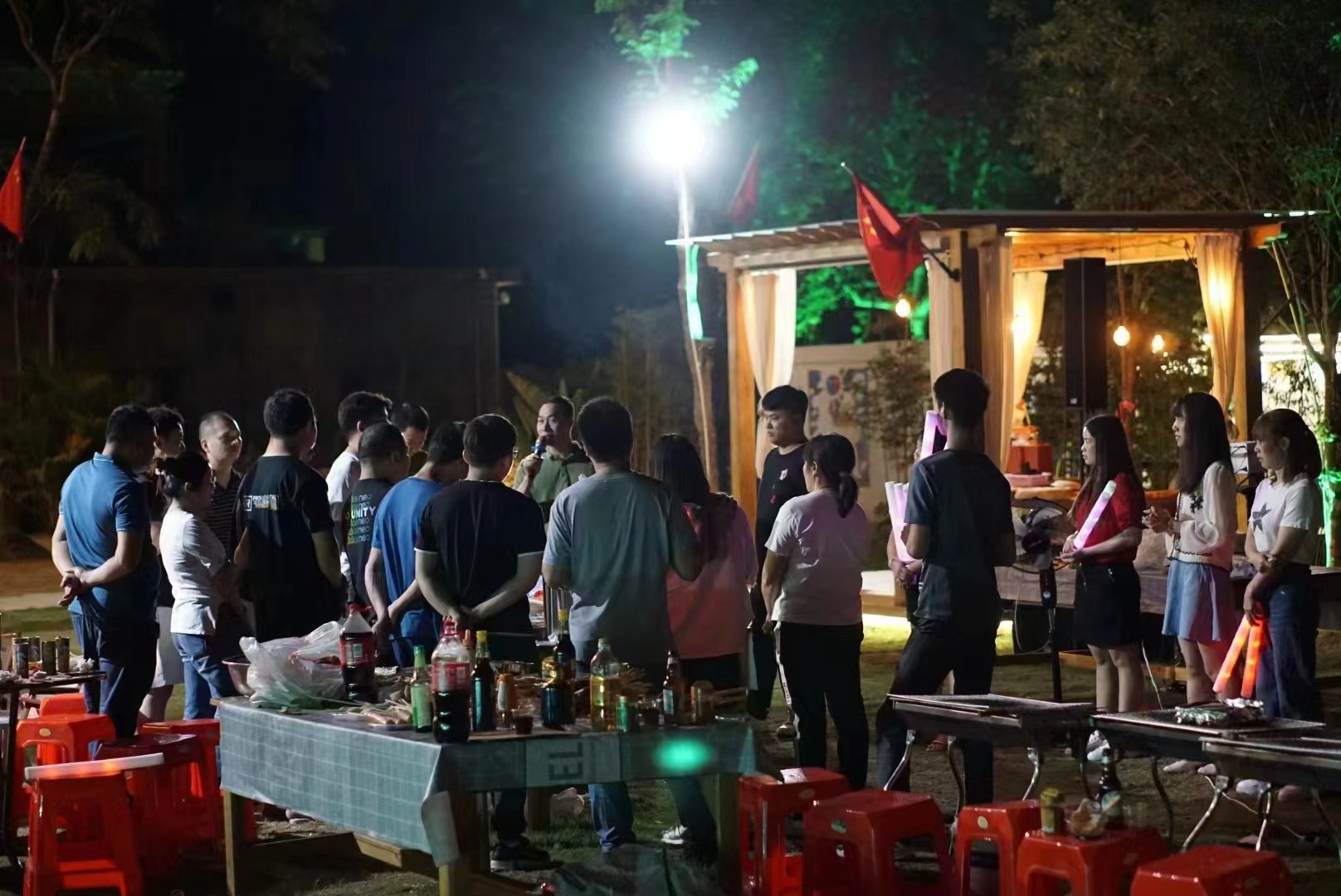 In the early evening, we showed the teamwork spirit of Ruijians’, grouped together to complete respective team’ task, including our group provided professional sound equipment debugging, projector construction group, filming group, game coordination group, cooking group to prepare the barbecue ingredients, etc. We all worked together to make sufficient preparations for the exciting part of the evening.