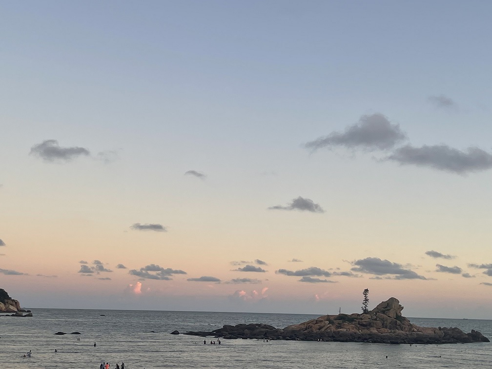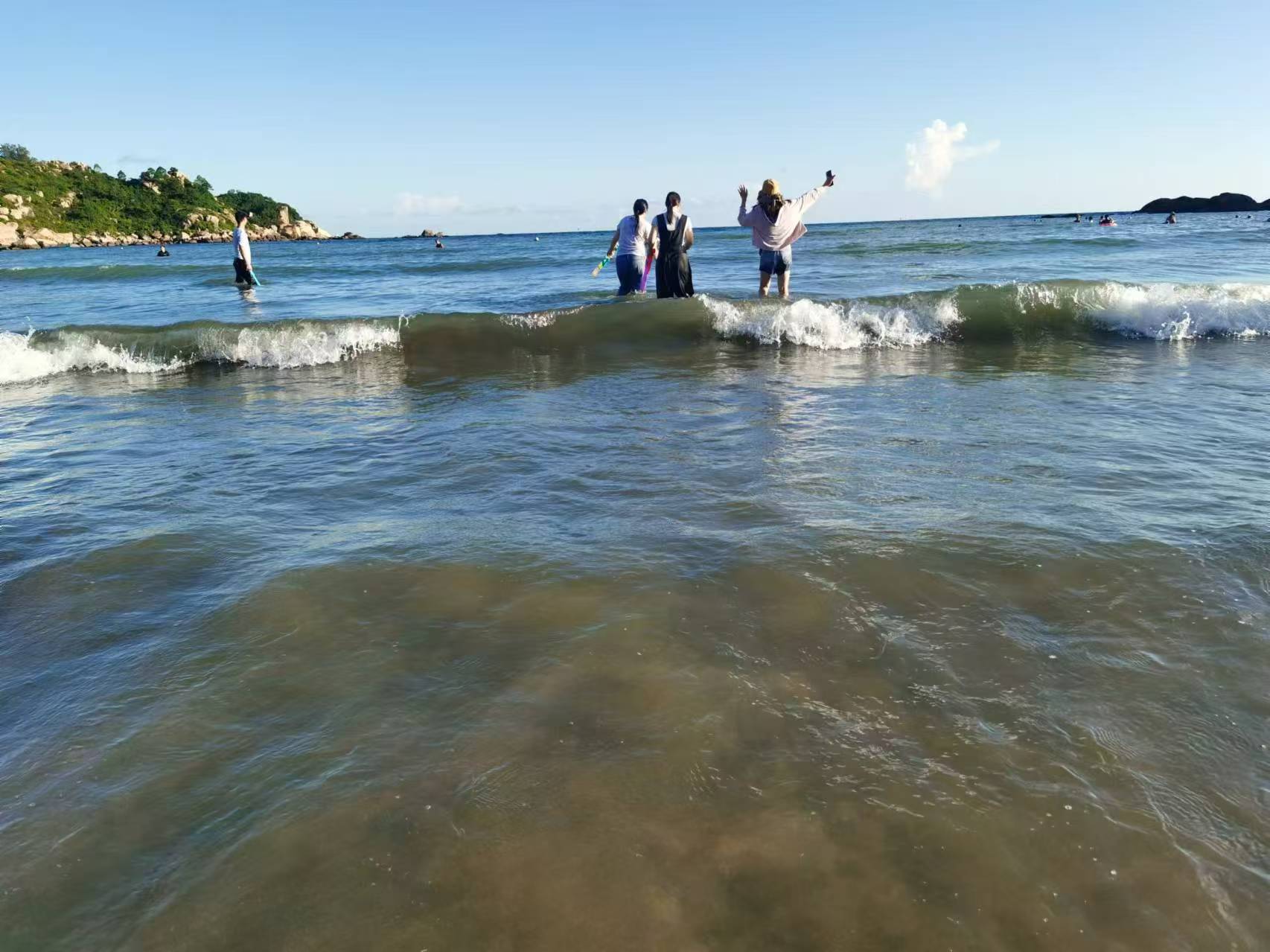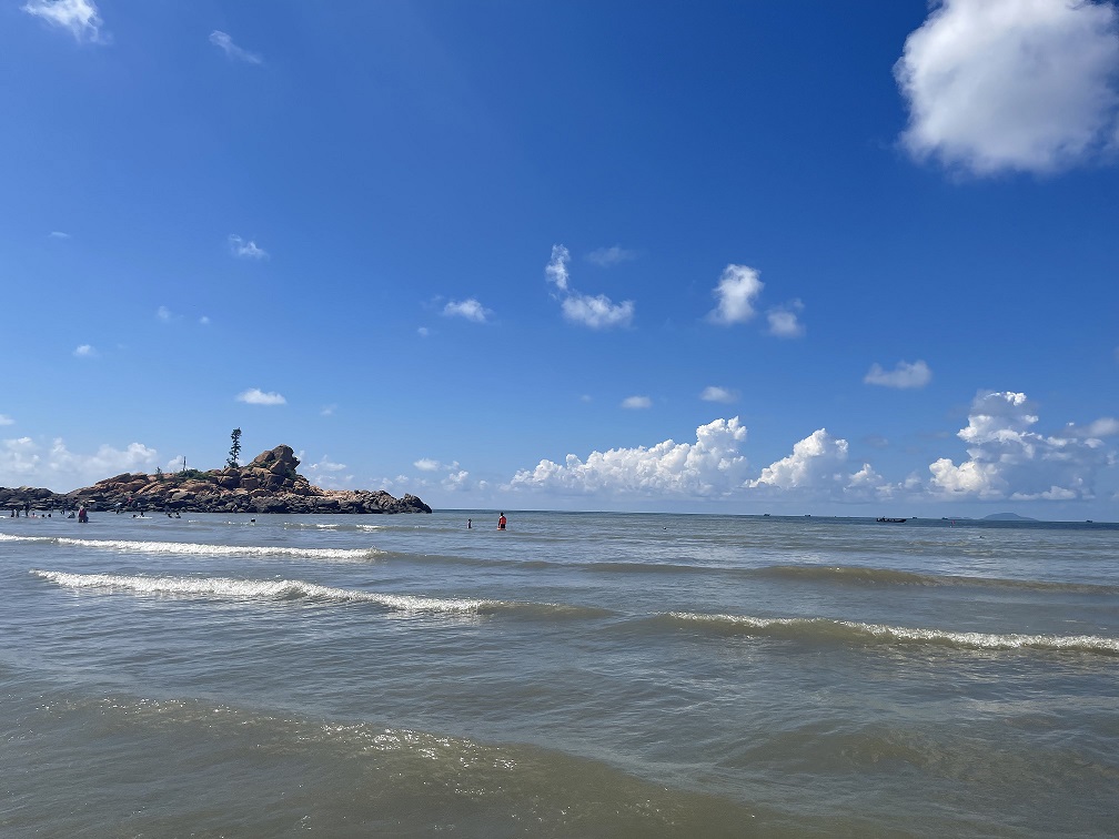 At about one o'clock in the afternoon, we arrived at the Tailiao Bay Fishing Village in Taishan City. The scenery along the way was beautiful, and there were many local seafood restaurants and self-operated stores selling seafood specialties. We hadn't had lunch yet and were attracted by the seafood restaurants along the way. We couldn't wait to have our first sumptuous seafood lunch in Tailiao Bay. After lunch, we continued to our destination - Tailiao Bay. We arrived at the hotel we had booked and checked in as per the itinerary. We had more than two hours of rest time to sort out our luggage and take a short rest. The friends who were more eager to go to the beach couldn't wait to warm up on the beach.
