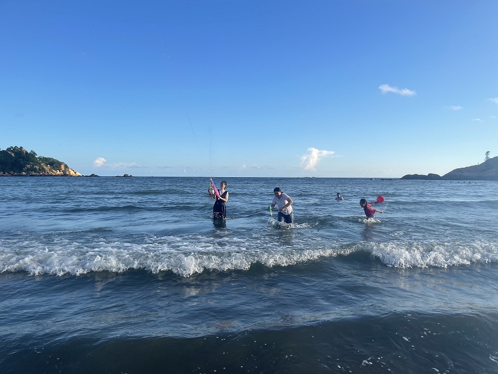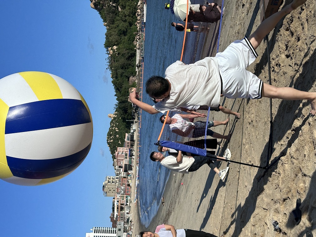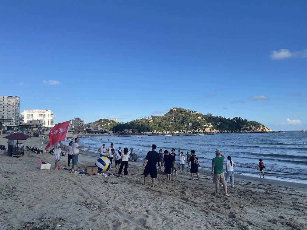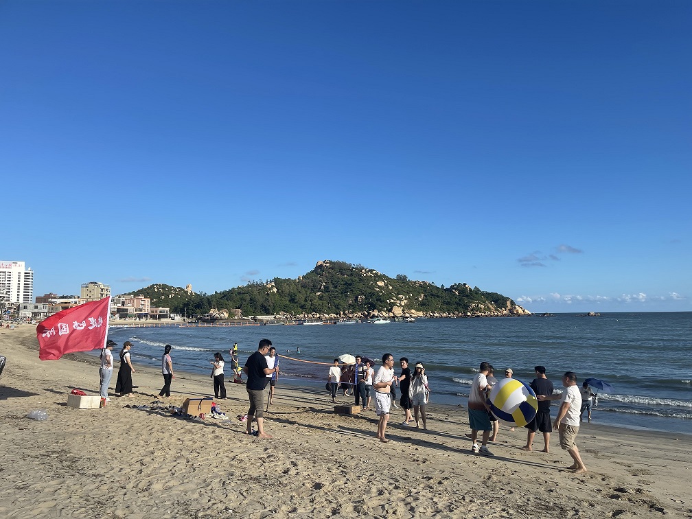 After taking a break and getting refreshed, it was already 4:30 p.m. Everyone gathered in the hotel lobby and headed to the beach to start our team-building activities. The activities included filling buckets with water, touching water bottles, beach volleyball, and water gun battles. The participants were divided into two groups and demonstrated a strong sense of teamwork, determined to compete with each other. One activity followed another, and everyone did their best, becoming more and more courageous despite setbacks. The atmosphere was full of enthusiasm...